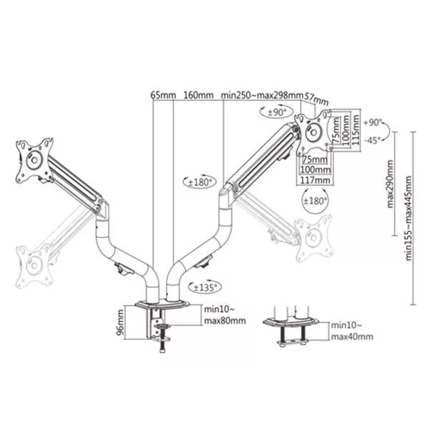 A karok forgathatók, kinyújthatók és visszahúzhatók, dönthetőek az olvasási szögek megváltoztatásához, és lehetővé teszik a kijelzők fekvő és álló módból történő elforgatását stb.