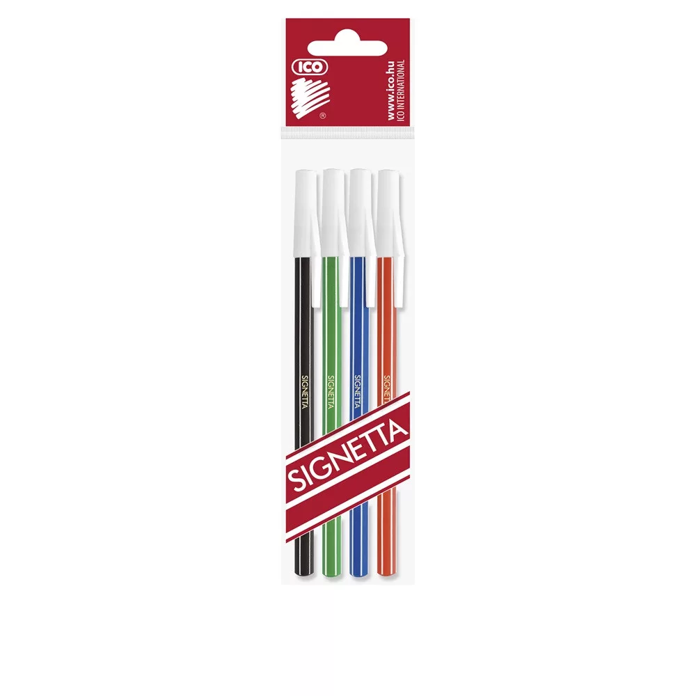 Eldobható golyóstoll biztonsági kupakkal. Vonalvastagság: 0,7 mm. Íráshossz: 2500 m. Kék, piros, fekete és zöld színek. Katalóguskód: 1288