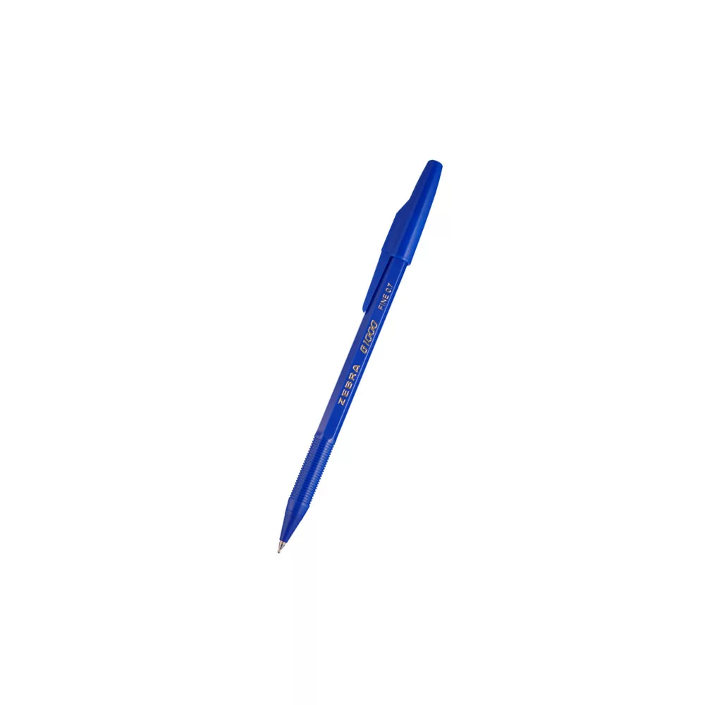 Klasszikus formájú, kupakos, színes testű golyóstoll. A Zebra márka közkedvelt írószere. A bordázott markolat meggátolja az ujjak csúszását, ezáltal stabil írást biztosít. Hatszögletű, vékony tolltest, nem cserélhető betétes Az írás színe megegyezik a test színével. Tinta színe kék. Golyóátmérő: 0,7 mm, írásvastagság: 0,24 mm. 12db/gyűjtő, 1728db/karton. Katalóguskód: 50046