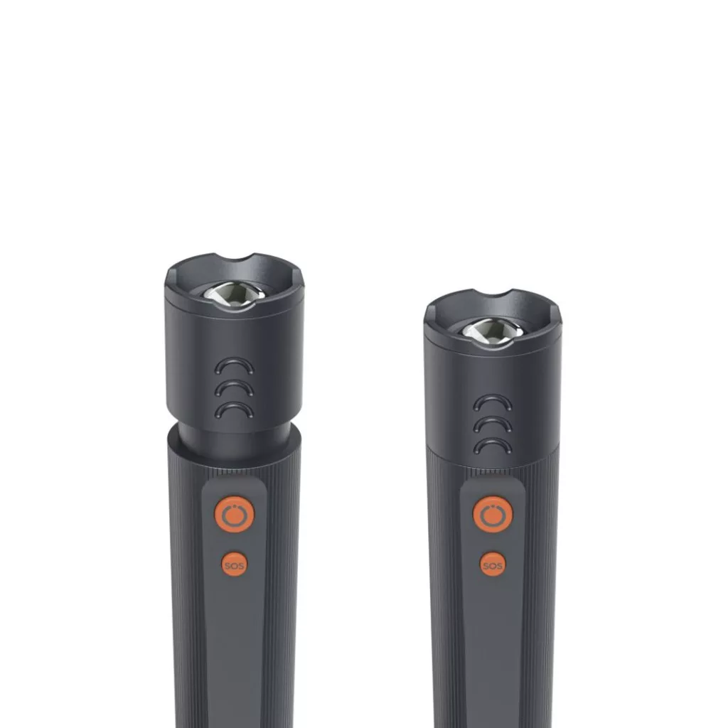 • A kültéri zseblámpa bordázott markolata biztos és csúszásmentes fogást biztosít, a zoom funkció pedig a bordázottságnak köszönhetően könnyen beállítható