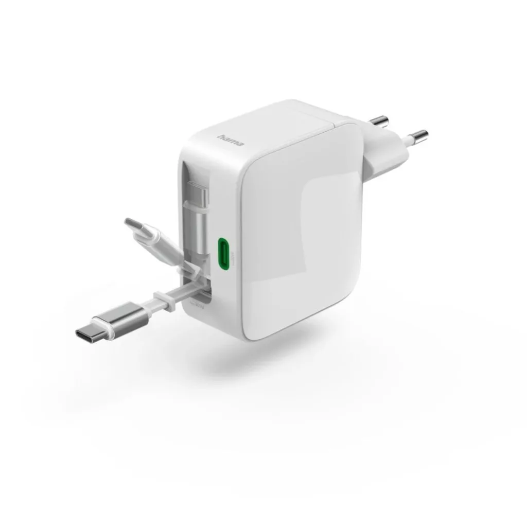Gyors töltő akár két eszköz egyidejű töltéséhez, kihúzható USB-C-kábellel, hogy mobiltelefonokat, táblagépeket, laptopokat és hasonló eszközöket a lehető leggyorsabban konnektorról tölthessünk – töltőadapter a Power Delivery gyors töltési technológiával,amely emellett támogatja a Qualcomm® Quick Charge™ 2.0/3.0 technológiát is