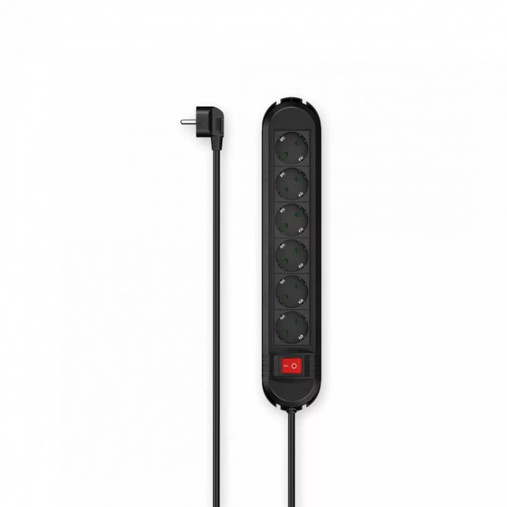 Elosztó, 6xDIN, 1,5m, Kapcsoló, Black