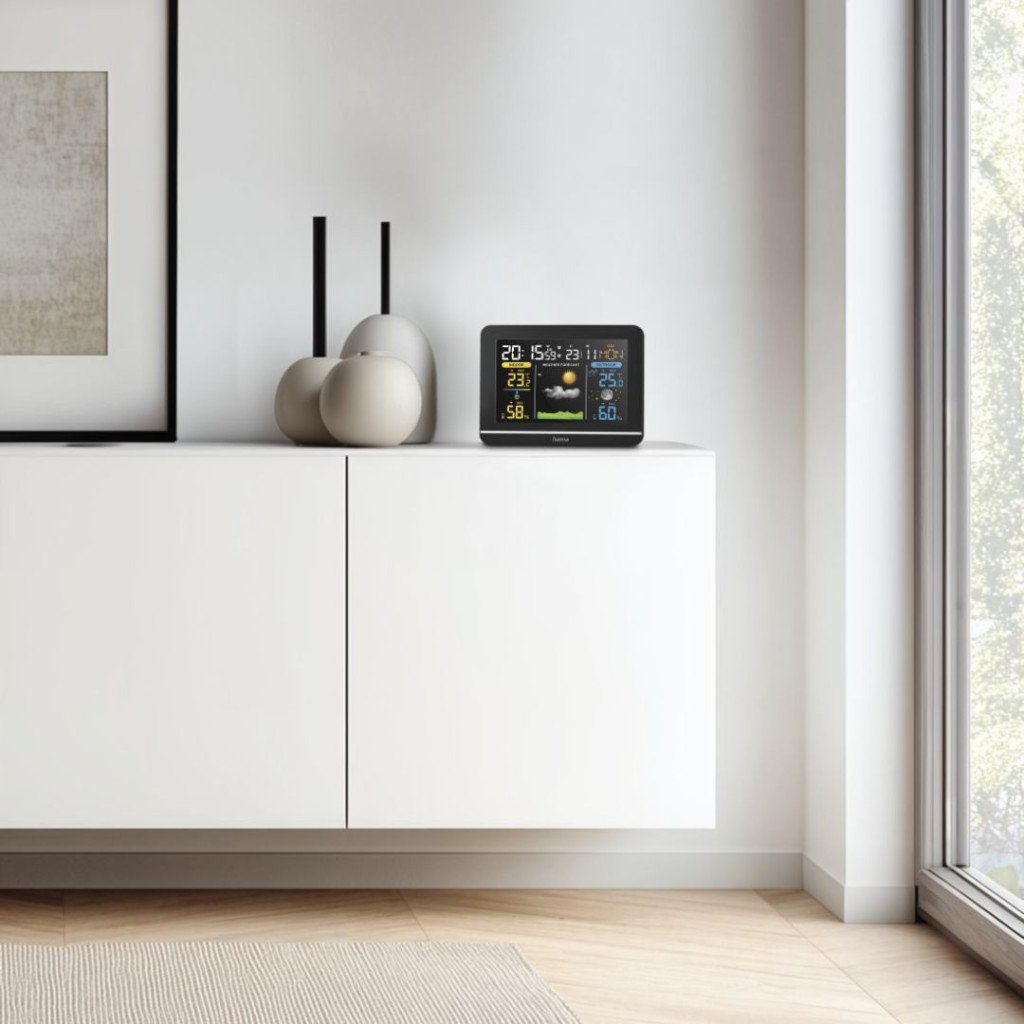 • A hőmérséklet, páratartalom, idő, dátum és időjárás-előrejelzés digitális kijelzéséhez