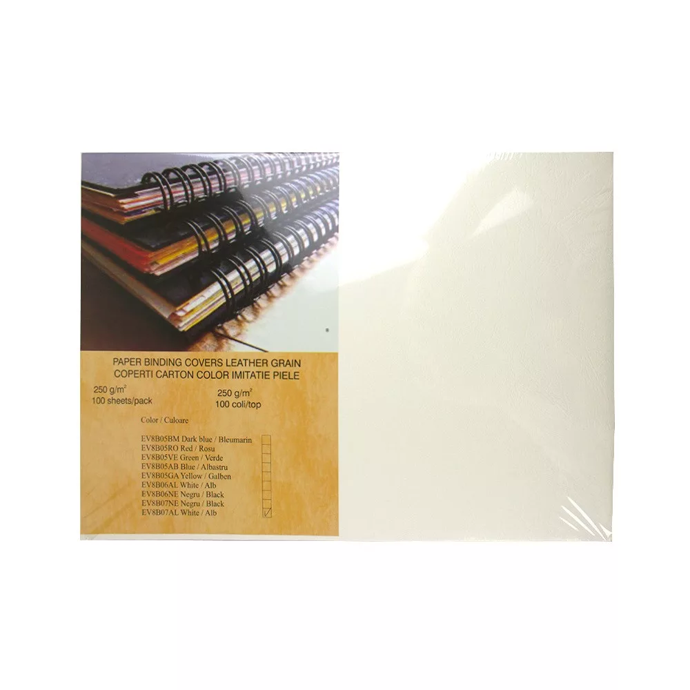 - Hátlap spirálkötéshez, bőrhatású, matt - Méret: A3 - Kiszerelés: 100 lap/csomag - Súly: 250 g/m2 - Szín: fehér