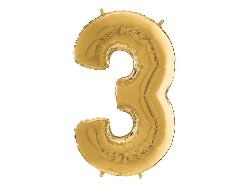 Héliumos fólia lufi, 3-as szám, 65 cm, arany