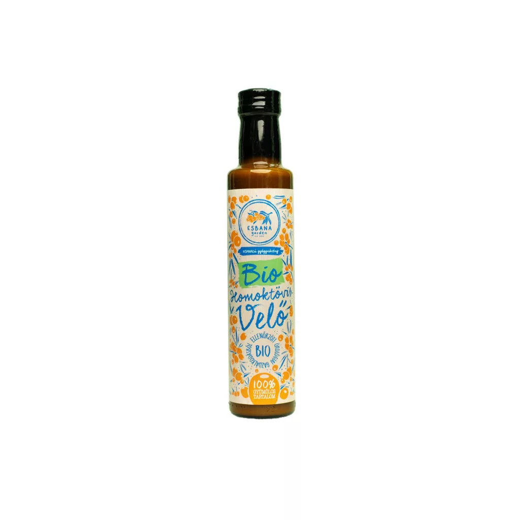 Minőségét megőrzi: 2026-10-07 Natúr velőnk kizárólag tiszta bio homoktövisbogyóból nyerjük ki, egy kíméletes eljárás során. A homoktövisbogyót a saját bio minősítéssel rendelkező ültetvényünkön termesztjük. Az ESBANA garden bio homoktövisvelő napi fogyasztását ajánljuk, töményen 1-3 evőkanál. Hígítva egy kellemes friss italt kaphatunk, amit még tovább ízesíthetünk gyümölcslével akár mézzel. Nyári hőségben kiváló limonádét, frissítőt is készíthetünk belőle víz hozzáadásával.Összetevők: bio homöktövisvelőÁtlagos tápérték 100g termékben:Energia: 200kj/48.1kcalZsír: 2,6gAmelyből telített zsírsavak: 0,6gSzénhidrát: 3,6gAmelyből cukrok: 3,1gFehérje: 0,9gSó: 0,1g