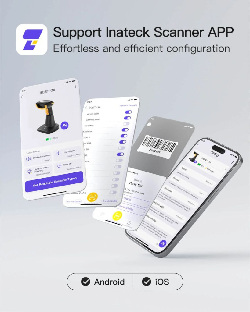 AI + APP + SDK a könnyebb használatért: Innovatív AI funkciókkal ellátott szkennerünk lehetővé teszi az Inateck AI-vel való egyszerű interakciót a vonalkód-szkenner gyors konfigurálása és az adatok feldolgozása érdekében. Oldja meg a komplex adatfeldolgozási feladatokat másodpercek alatt, több testreszabási lehetőséggel, gyorsabban, egyszerűbben és hatékonyabban, mint valaha