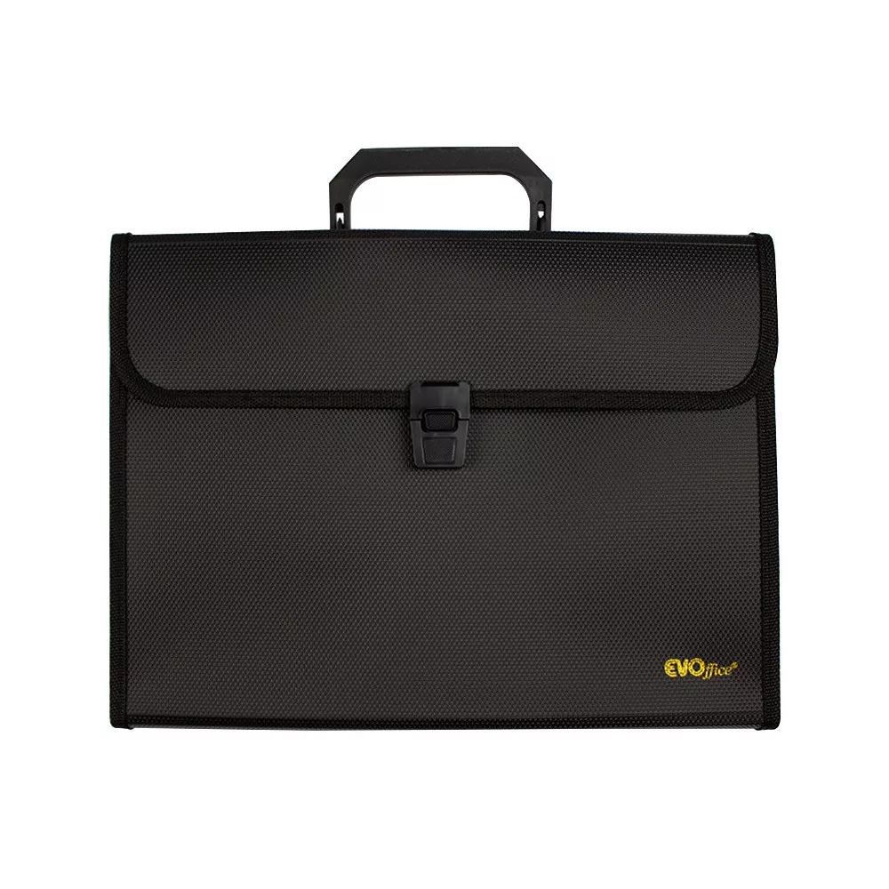 Praktikus és strapabíró EVOffice harmonikatáska 13 rekesszel, amely ideális dokumentumok rendszerezésére és biztonságos tárolására. A füles kialakításnak köszönhetően könnyen hordozható, míg a csatos zárás gondoskodik a tartalom védelméről. Tökéletes választás irodába, iskolába vagy akár otthoni használatra. Katalóguskód: 67480