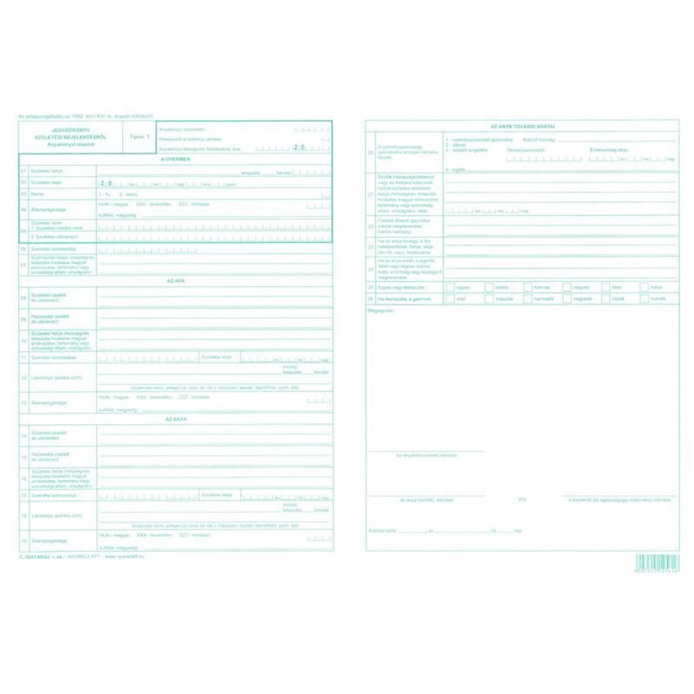Jegyzőkönyv születési bejelentésről 2lap C.0243-69/2015 Katalóguskód: 14522