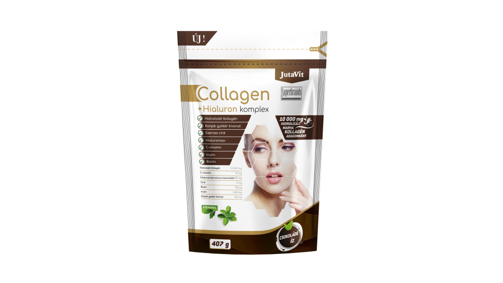 A kollagén a bőrszövet egyik természetes alkotóeleme. A termékben található kollagén, nagy tisztaságú, természetes marha kollagén peptidből készül. A hialuronsav az emberi szervezetben is előforduló, nagy vízmegkötő képességgel rendelkező poliszacharid, amely megtalálható többek között a bőrszövetben is. A C-vitamin hozzájárul a megfelelő kollagénképződéshez és ezen keresztül a bőr, a fogak, a csontozat, a porcok és a fogíny normál állapotának, működésének fenntartásához. A biotin és a cink hozzájárul a bőr és a haj normál állapotának megőrzéséhez. A cink hozzájárul a normál csontozat és körmök fenntartásához. A termék kizárólag szerves kötésű, jól hasznosuló cink-glükonátot tartalmaz. A cink-glükonátból származó szerves cink jobb hasznosulással rendelkezik, mint a szervetlen (cink-oxid) vegyületek. Összetevők: Hidrolizált kollagén (marha eredetű), kakaópor (kálium-karbonáttal alkalizált), rizspor készítmény (szárított rizsszirup, rizskeményítő, rizsliszt, stabilizátor [karragén]), inulin (cikória alapú, FibrulineTM), természetes aromák (fekete csoki, vanília, tejszín), konjak gyökér kivonat, nátrium-hialuronát, nátrium-klorid, L-aszkorbinsav, édesítőszerek (szukralóz, sztéviából származó szteviol-glikozidok [e 960a]), cink-glükonát, D-biotin.