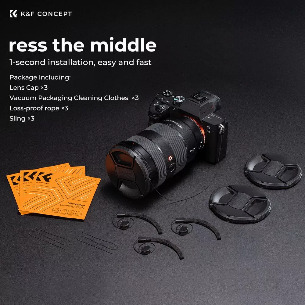 K&F Concept 3db objektívvédő sapka zsinórral + 3db törlőkendő, 95mm
