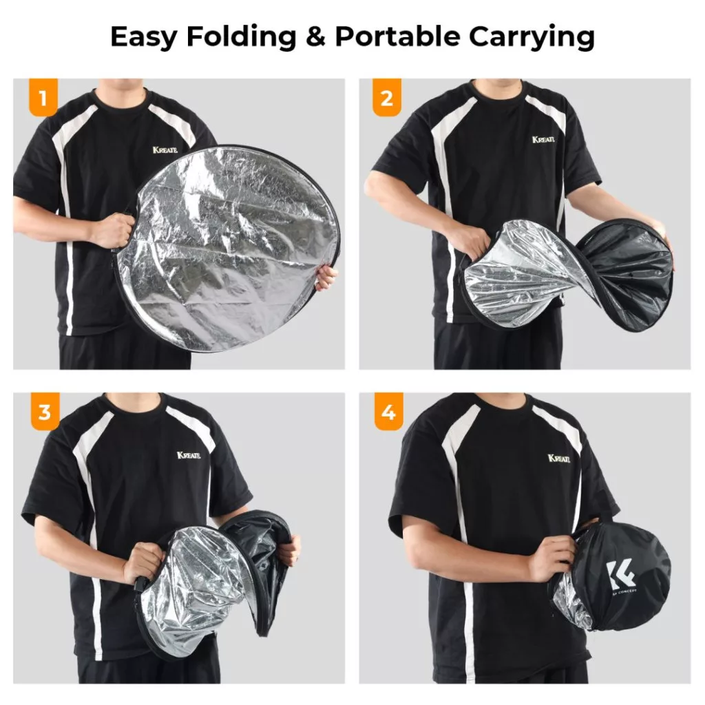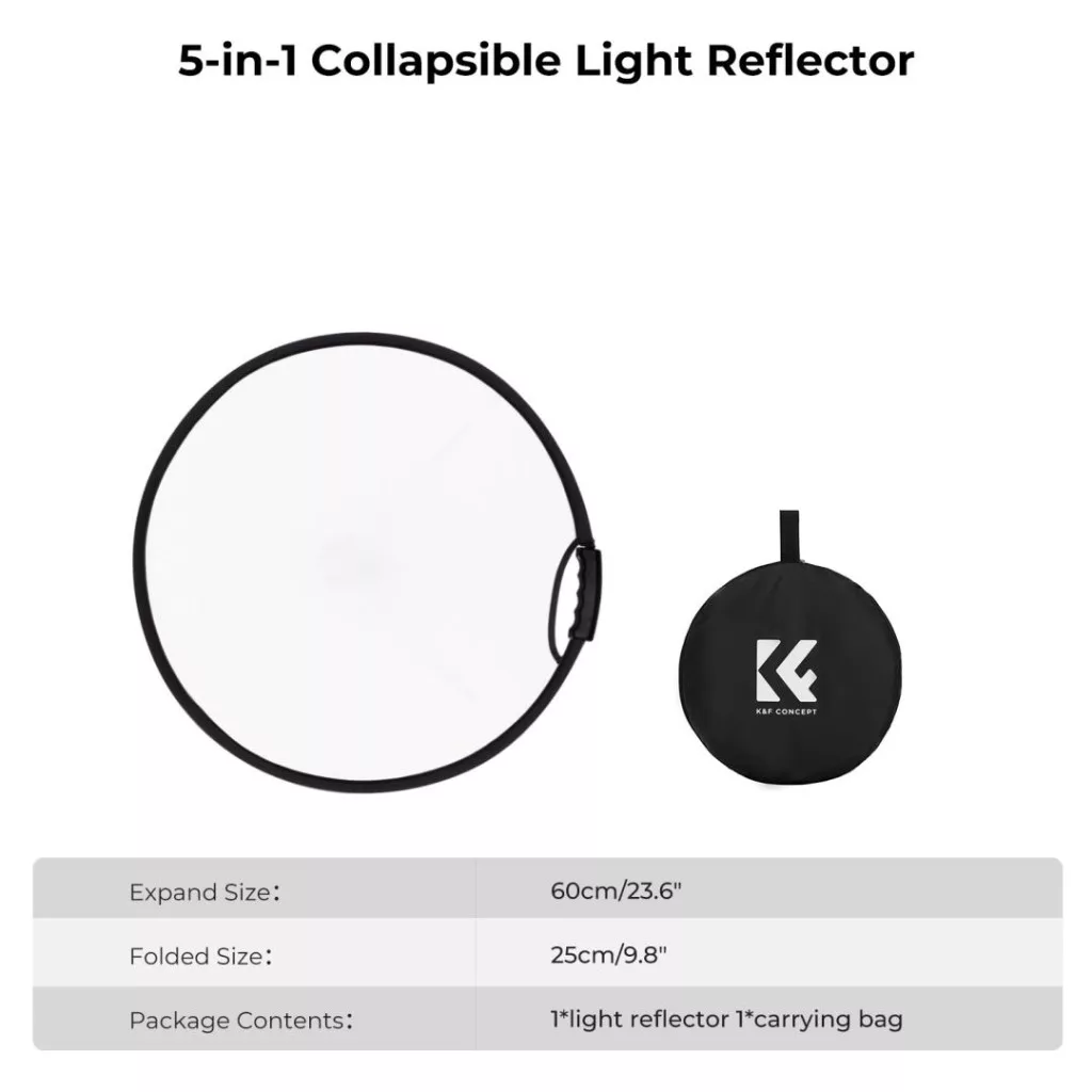 A K&F Concept 5in1 derítőlap fogantyúval ideális választás mindazok számára, akik sokoldalú és megbízható megoldást keresnek a világítás javítására kisebb fotós és videós projektek során.