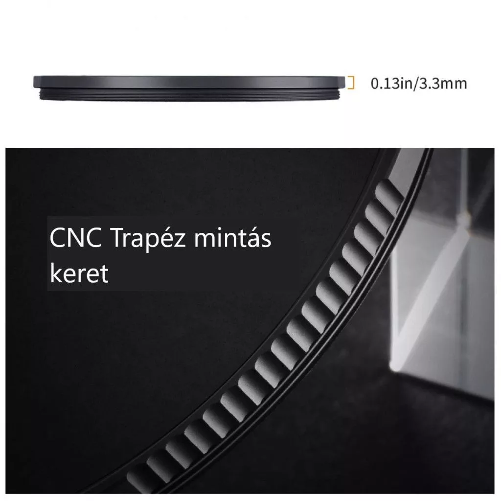 Black Mist 1/2 szűrő egy mindössze 3,3 mm, ultravékony kerettel és CNC-csúszásmentes kialakítással rendelkezik.