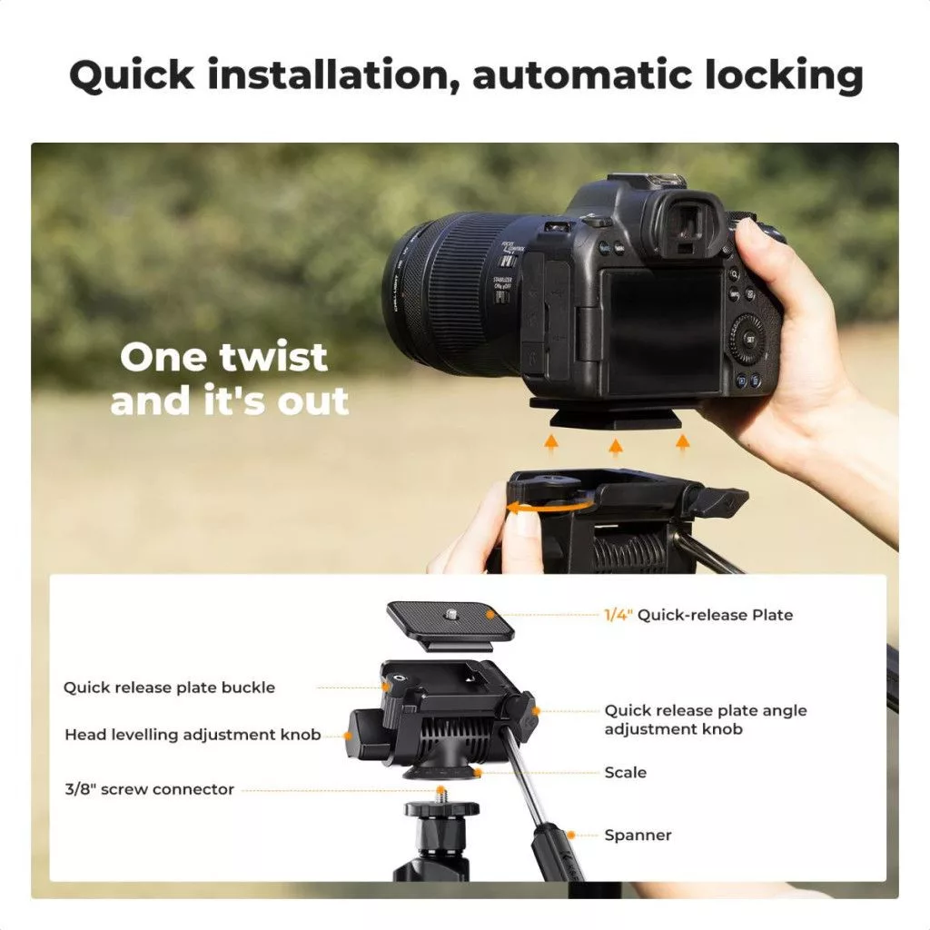A K&F Concept O234A0+BV01 tripod ideális megoldás mindazok számára, akik nagyobb munkamagasságot és rugalmas beállítási lehetőségeket keresnek kompakt méret és kis tömeg mellett. A 196 cm-es maximális magasság révén kiválóan alkalmas portré- és természetfotózásra, videózásra, valamint mobiltelefonos tartalomkészítésre is.