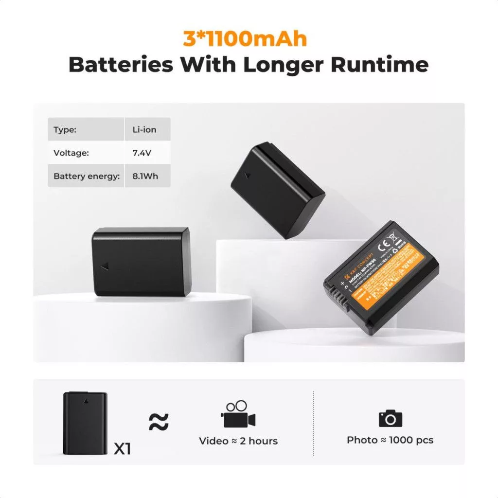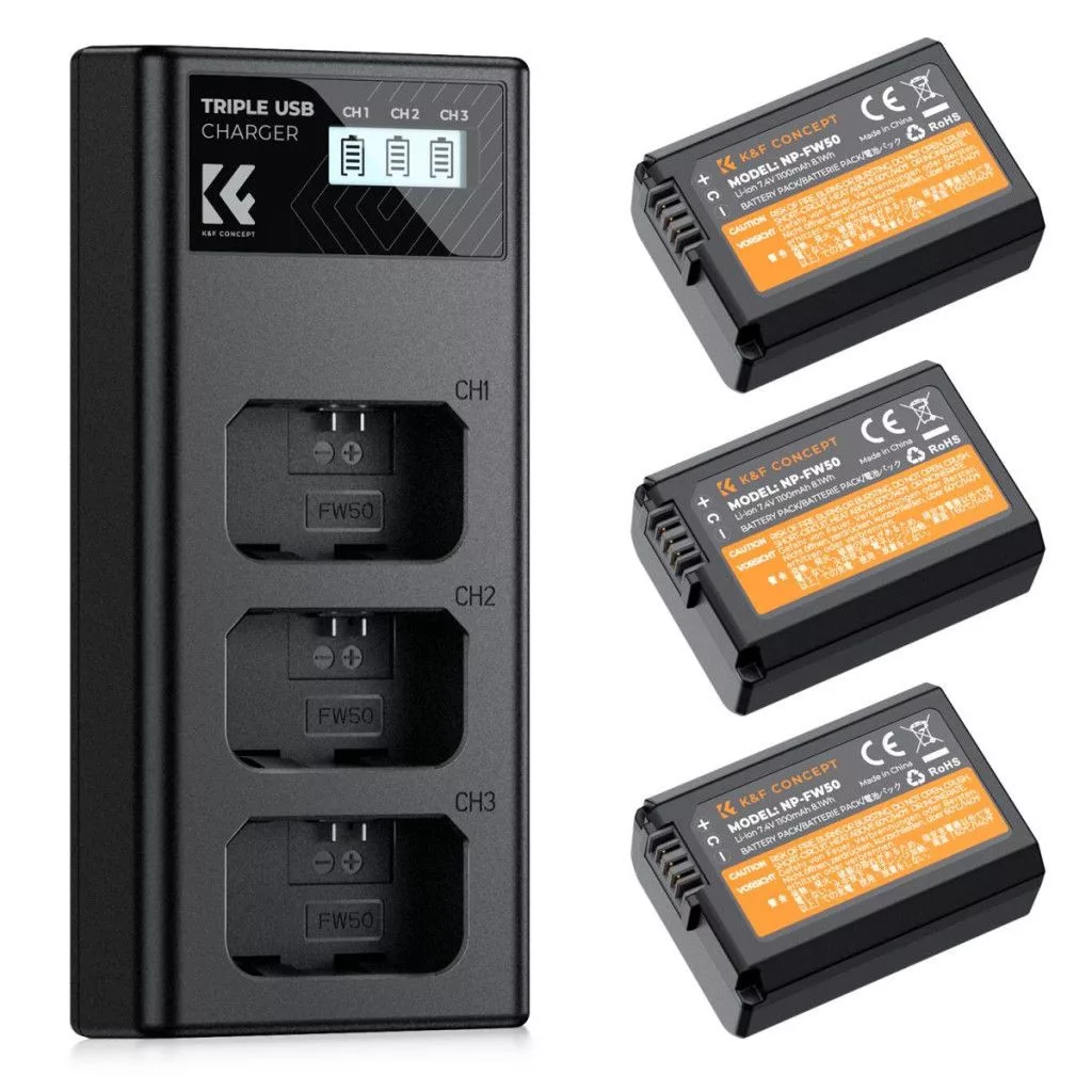 Ez a K&F Concept akkumulátor- és töltőszett ideális megoldás azoknak, akik Sony fényképezőgépeikhez keresnek megbízható, hordozható és nagy kapacitású energiaellátást. A csomag három darab, teljesen dekódolt NP-FW50 akkumulátort és egy háromhelyes, LCD kijelzős USB-C töltőt tartalmaz.