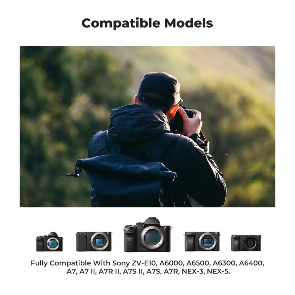 Sony ZV-E10, A6000, A6300, A6400, A6500, A5000, A5100, A7, A7II, A7R, A7RII, A7S, A7SII, RX10, RX10 II, RX10 III, RX10 IV