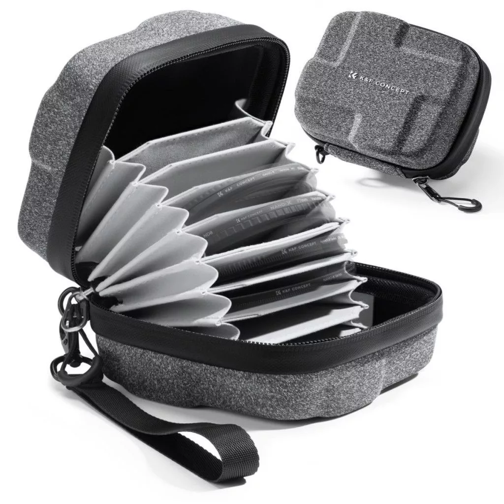 A K&F Concept vízálló, ütésálló szűrőtartó keménytok ideális megoldás fotósok számára, akik biztonságosan és rendszerezetten szeretnék tárolni objektívlencse szűrőiket. A tok akár 10 db szűrő számára nyújt védelmet - legfeljebb 92 mm átmérőig -, miközben kompakt, hordozható kialakításának köszönhetően könnyedén elfér fotós táskában vagy hátizsákban.