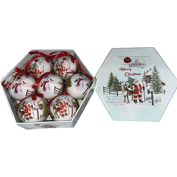 - 7 darab karácsonyi gömb, különböző színekben és mintákban
