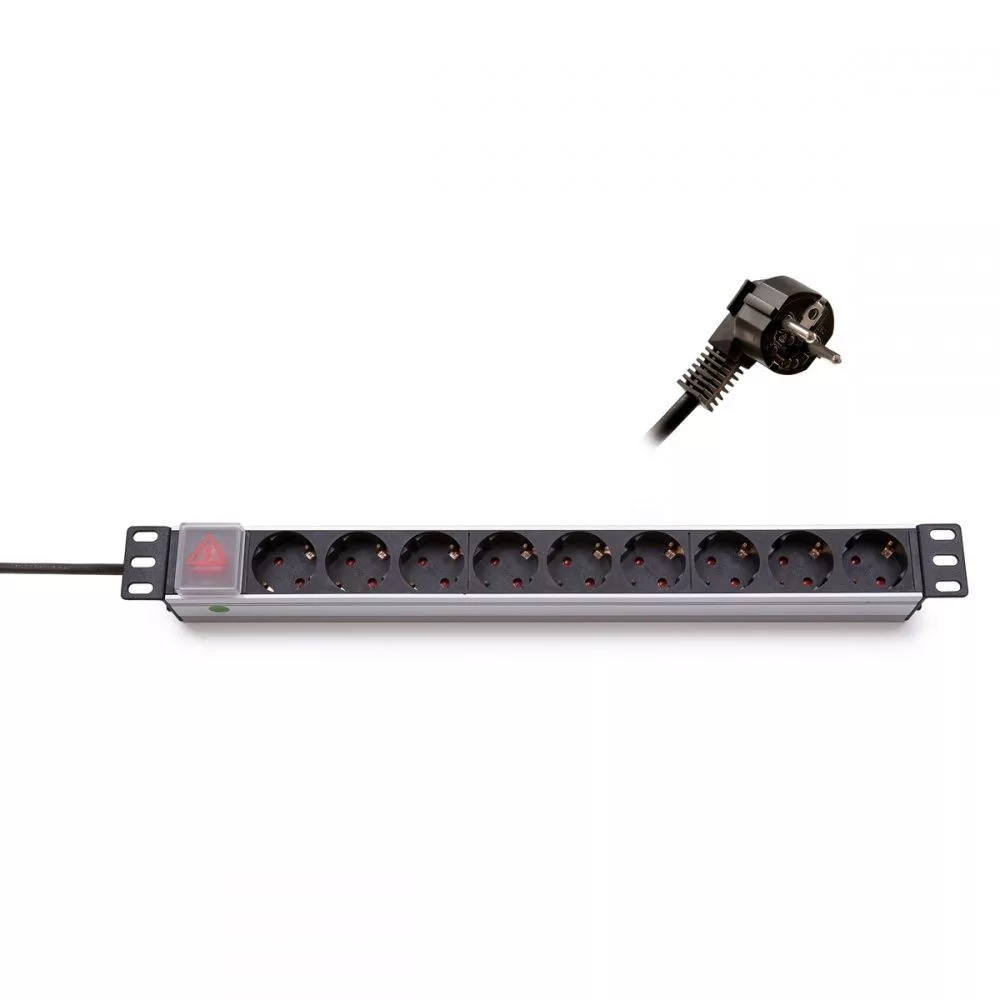 Elosztó, 9xDIN, 2,5m, Kapcsoló, Black
