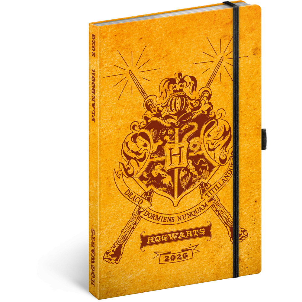 KEMÉNYTÁBLÁS NOTESZ KRÉMSZÍNŰ LAPOKKAL LESZORÍTÓ GUMISZALAGGAL HARRY POTTER-HOGWARTS 130X210MM, PRESCO