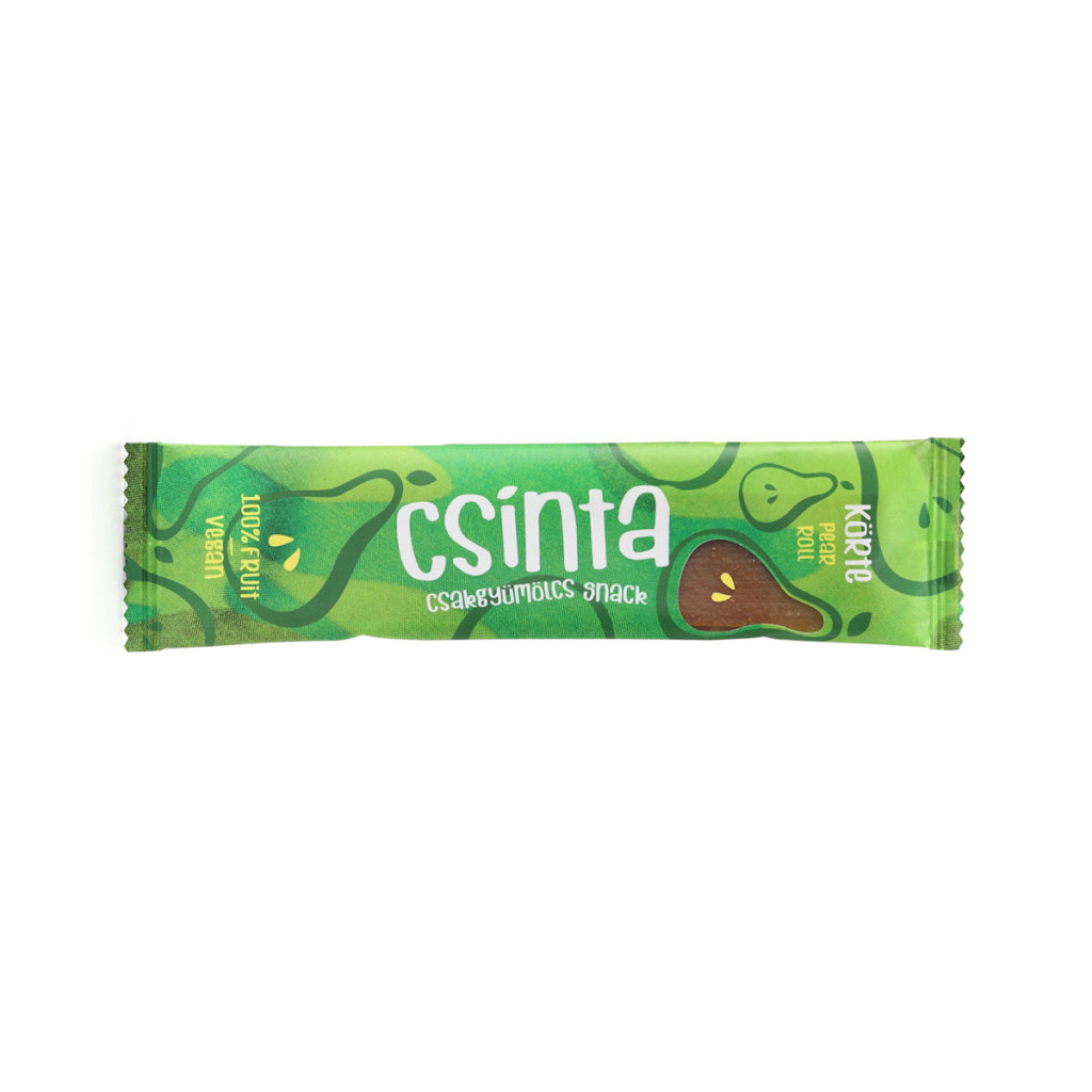 A Csinta csak gyümölcs snack, mely elevenséget visz a hétköznapokba és megszínesíti a közös kalandokat. Természetes energia utánpótlás a hét minden napjára. 100% gyümölcs és semmi más. A gyümölcsök legjavát szárítjuk alacsony hőfokon, hogy a lehető legtöbb vitamin és természetes íz jusson el hozzátok!Összetevők: Alma, körteEgyéb allergén információ: Nyomokban diót, szezámmagot tartalmazhat.Átlagos tápérték 100g termékben:Energia: Energia: 1323kJ/313kcal Zsír 0,5g -amelyből telített zsírsavak: 0g Szénhidrát: 67,4g -amelyből cukrok: 67,4g Fehérje: 2,3g Só: 0,04g