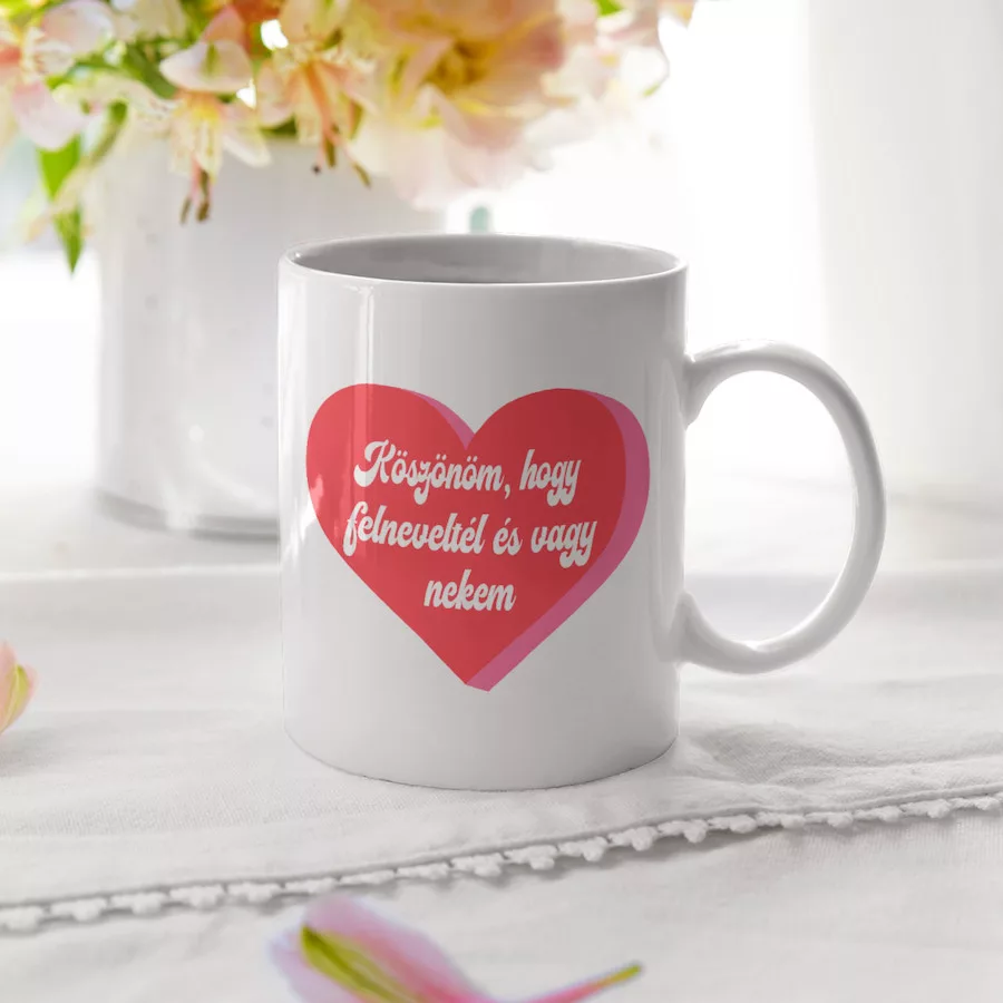 Köszönöm, hogy felneveltél fehér bögre.Bemutatjuk nektek a saját gyártású bögréinket!Rengeteg egyedi minta közül választhatod ki azt, amelyik a legjobban illik hozzád, vagy ahhoz a személyhez, akit meg szeretnél ajándékozni!De tényleg! Annyira sok ötletünk van, hogy bátran állítjuk azt, hogy biztosan megtalálod a tökéletes képpel és szöveggel ellátott bögrét!A kerámia bögrék 300 ml űrtartalommal rendelkeznek, mosogatógépben is moshatók, ráadásul mikrózhatók is! Sőt az egyik legjobb dolog bennük az, hogy két oldali nyomattal láttuk el őket, így a bögre mindkét oldalán láthatod majd a mintát!Csak tudj majd választani közülük! De ér egyszerre többfélére is beruházni! Hisz tudjuk jól, hogy bögréből sosem elég!Minőségi kivitelezés, dizájnos megjelenés jellemezi az összes egyedi tárgyunkat!Űrtartalom: 300 mlAnyag: KerámiaMosogatógépben moshatóMikrózhatóKét oldali nyomat. A nyomat a bögre mindkét oldalán látható.