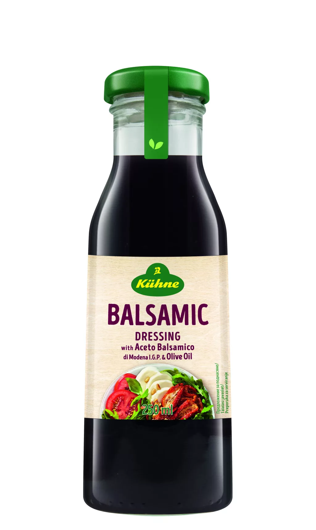 Összetevők: víz, 25% Aceto Balsamico di Modena (borecet, sűrített szőlőmust), glükóz-fruktóz szirup, repceolaj, só, sűrített szőlőlé, olívaolaj (0,8%), nátrium-acetát savanyúságot szabályozó anyag, karragén sűrítőanyag.