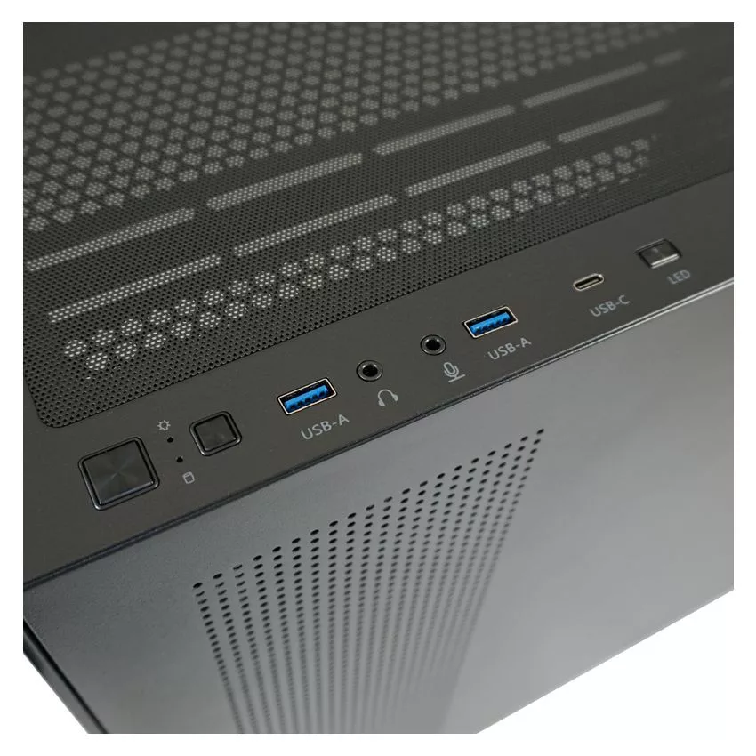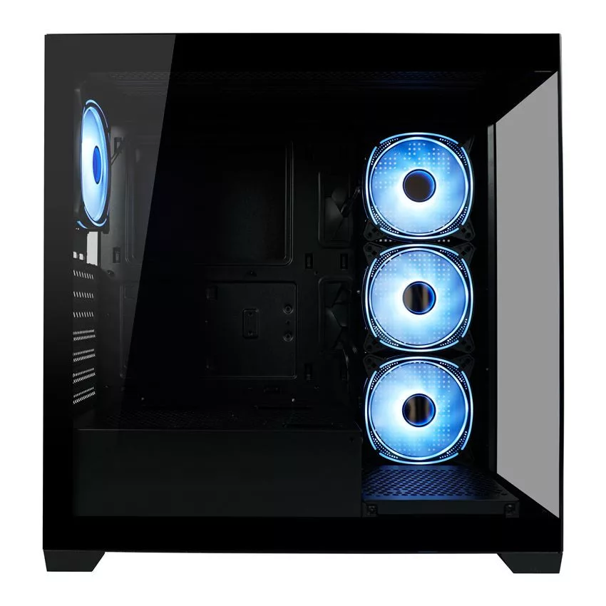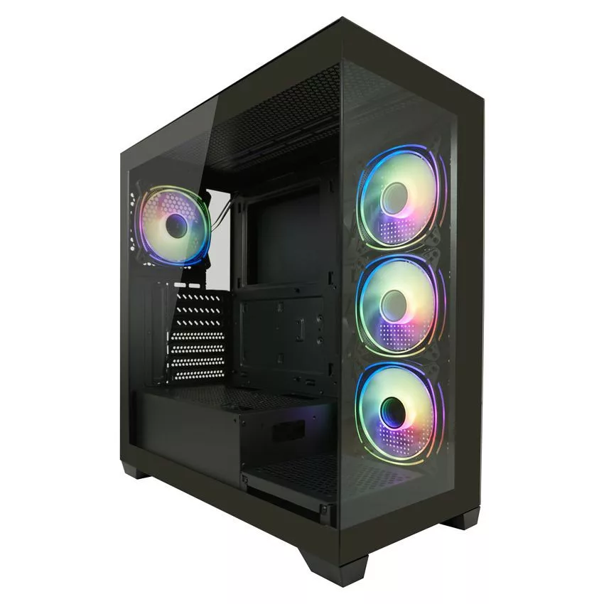ATX, Black, 2x3,5", 1x2,5", 2xUSB3.2, 1xUSB Type-C, Audio, Táp nélkül, 455x220x445mm, Ventilátor:4x12cm, Tempered glass window, RGB, Gamer