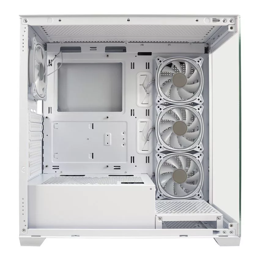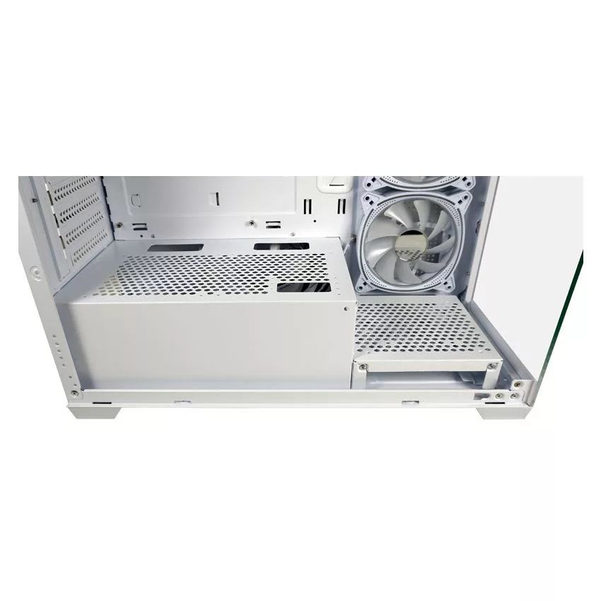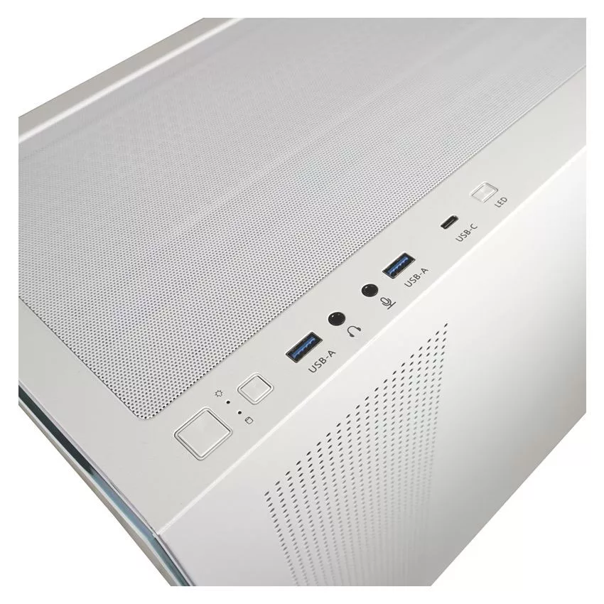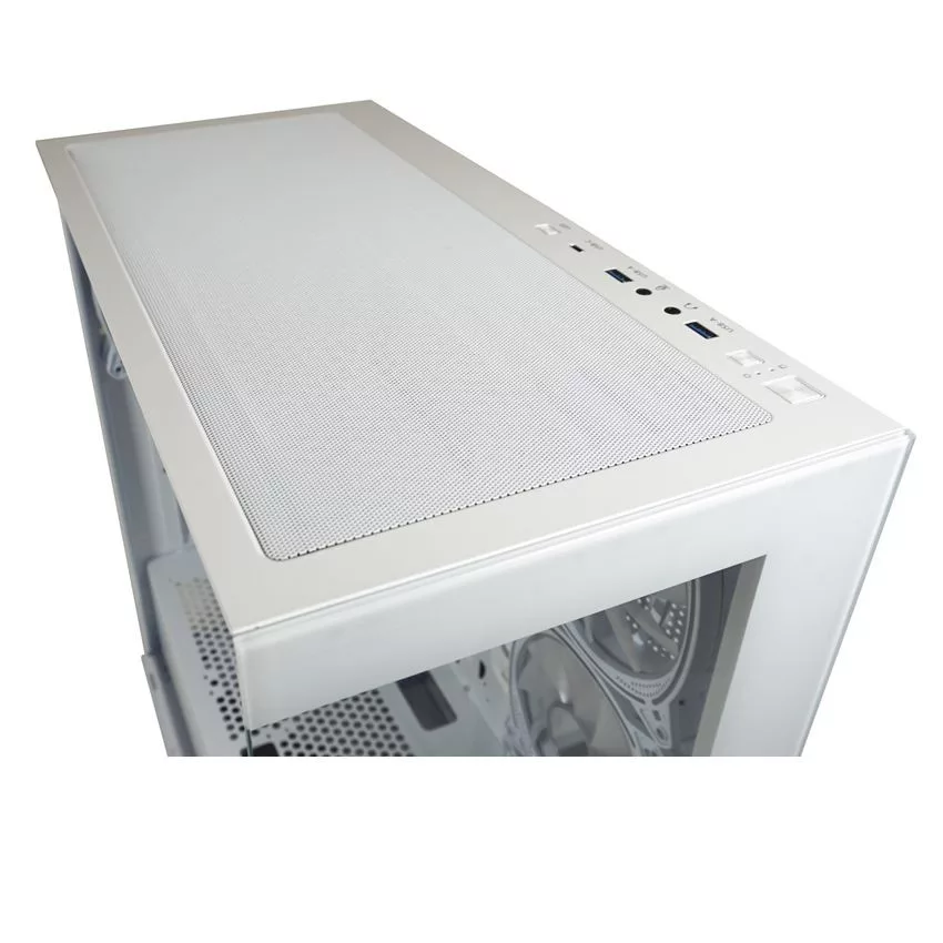 ATX, White, 2x3,5", 1x2,5", 2xUSB3.2, 1xUSB Type-C, Audio, Táp nélkül, 455x220x445mm, Ventilátor:4x12cm, Tempered glass window, RGB, Gamer