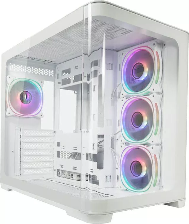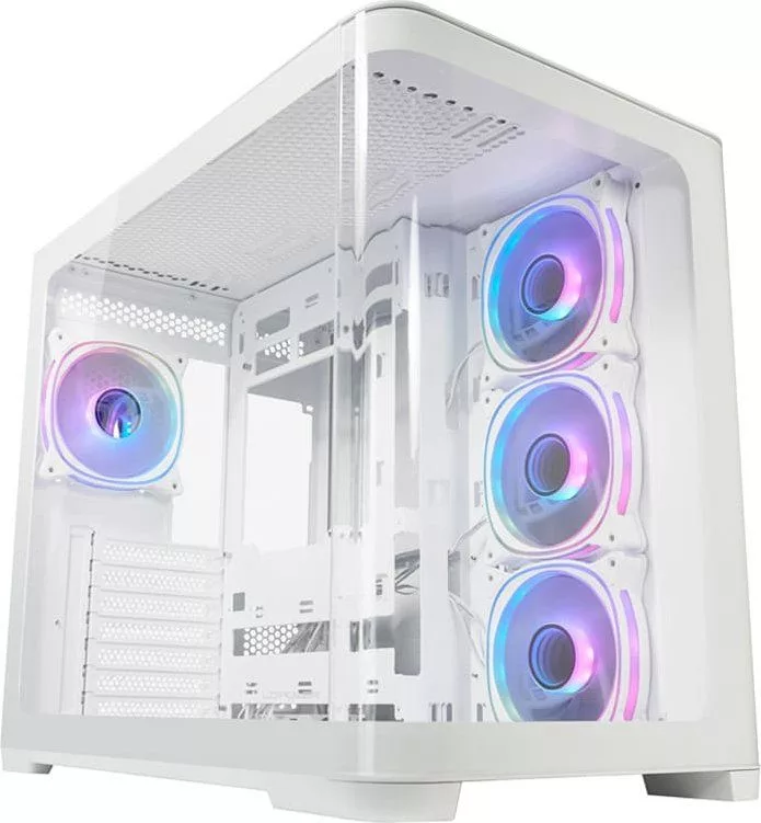 ATX, White, 2x3,5", 3x2,5", 2xUSB3.2, 1xUSB Type-C, Audio, Táp nélkül, 400x285x470mm, Ventilátor:4x12cm, Tempered glass window, RGB, Gamer