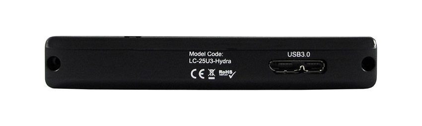 Az LC-25U3-Hydra merevlemezház nemcsak kompakt és könnyű kialakításával, hanem mindenekelőtt alumínium házával is lenyűgöző, amely kiváló hőelvezetést tesz lehetővé.