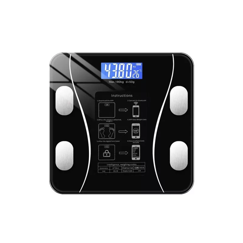 A beépített Bluetooth segítségével a mérleg könnyedén csatlakozik a telefonodhoz. Csak töltsd le az ingyenes "OKOK international" alkalmazást, és máris nyomon követheted az eredményeidet. Kapcsold be az alkalmazást, lépj a mérlegre, és az adatok automatikusan megjelennek a telefonodon, részletes leírással együtt. Erős és Elegáns - Maximum 180 kg-ig
