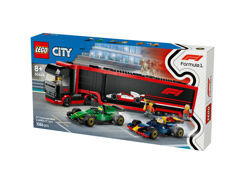 LEGO City 60445 F1-es kamion, rb20 és amr24 F1-es autókkal