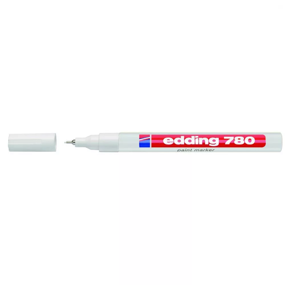 Üveg, porcelán, műanyag, fém illetve szinte minden felület feliratozására, jelölésére alkalmas. különösen ajánlott szennyezett felületekhez, lakk- és dekorációs fémtestű marker. Kerekített csúcs, fémtest, permanent, lakkszerűen fedő festékkel töltve. Gyorsan száradó festék, írásképe törlés- és vízálló, magas fény- hő- és törlésálló. Festékadagolása egyenletes, szelep vezérli, pótcsúcsolható (EDDDING 780 N írócsúcs). Vonalvastagság: 0,8 mm. 10db/dob Katalóguskód: 1258