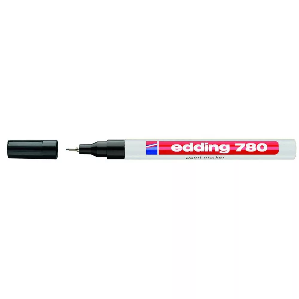 Üveg, porcelán, műanyag, fém illetve szinte minden felület feliratozására, jelölésére alkalmas. különösen ajánlott szennyezett felületekhez, lakk- és dekorációs fémtestű marker. Kerekített csúcs, fémtest, permanent, lakkszerűen fedő festékkel töltve. Gyorsan száradó festék, írásképe törlés- és vízálló, magas fény- hő- és törlésálló. Festékadagolása egyenletes, szelep vezérli, pótcsúcsolható (EDDDING 780 N írócsúcs). Vonalvastagság: 0,8 mm. 10db/dob Katalóguskód: 1254