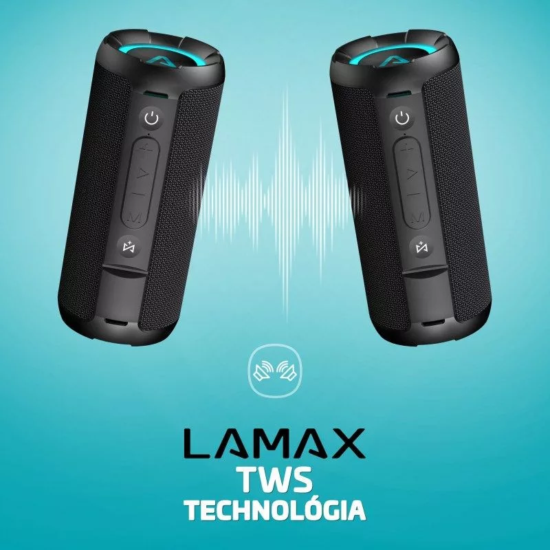 Minden tevékenysége megfelelő hangulatot kölcsönöz a nagyszerű hangzásnak gazdag mélyhangokkal és tiszta magas hangokkal, amelyek ebből a jóképű, kétutas hangsugárzókkal és akár 40 W teljesítménnyel áradnak. Ha nagyobb eseményt szeretne megszólaltatni, a true wireless stereo funkció helyet biztosít egy másik LAMAX SoundJam1 csatlakoztatásához. Élvezze a szórakozást megállás nélkül szinte egész nap, az akkumulátor akár 20 órát is bír.