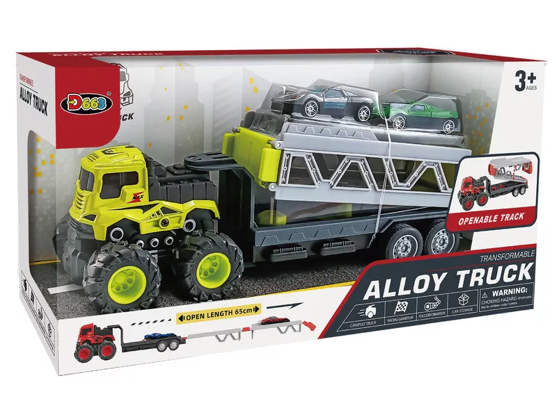 Lendkerekes tréler 2 db fém autóval