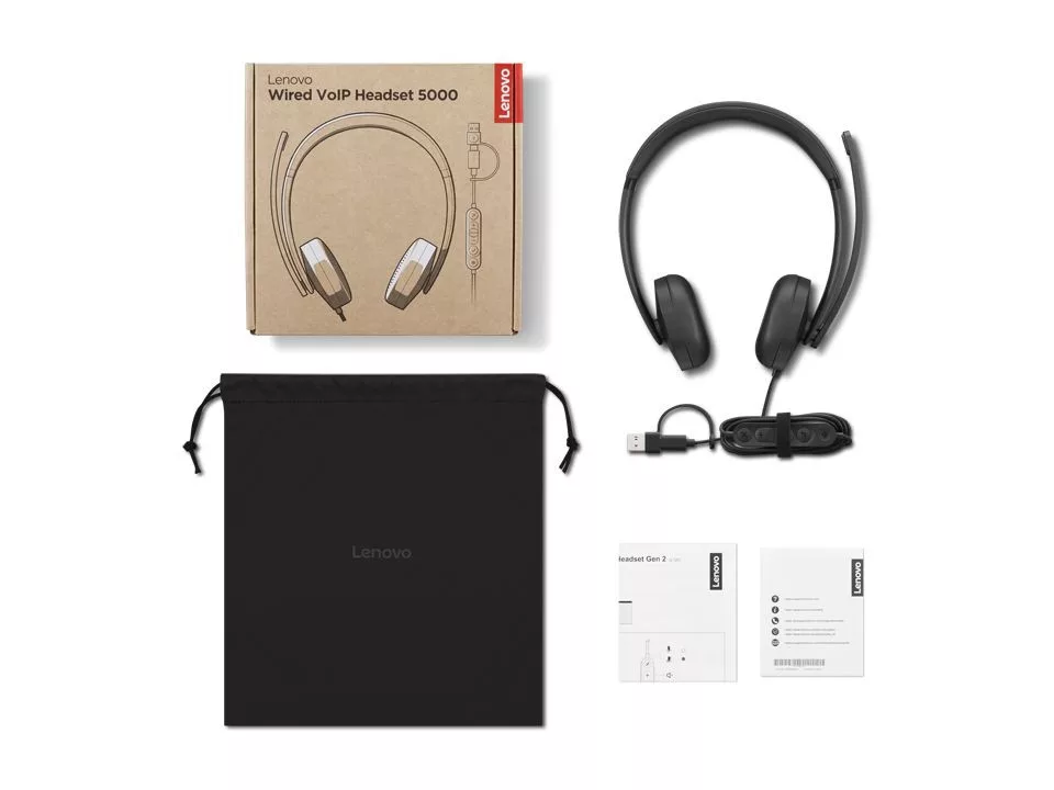 Lenovo Wired VOIP Teams Headset 5000 Black