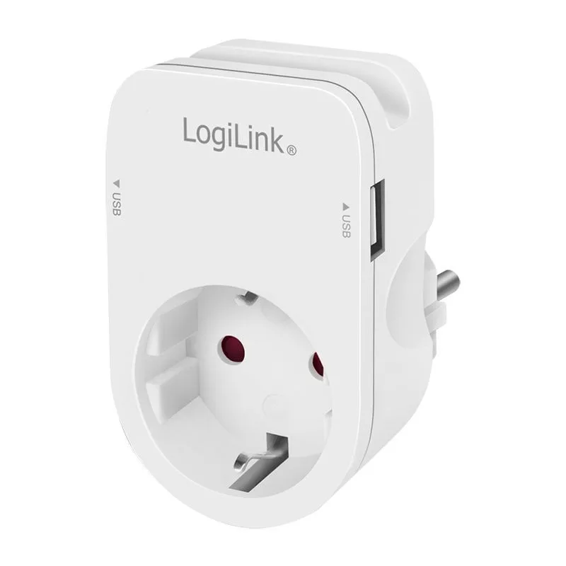Logilink Socket adapter with holder 1x CEE 7/3 & 2x USB-A
