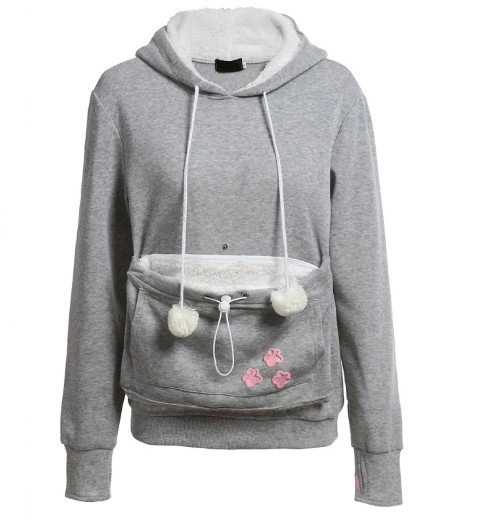 A pulóver zsebe nagyon puha és meleg, ami a cicák nagy kedvence. A kapucni zsinórja végén lévő két gombolyag segít lekötni négylábú nyávogód figyelmét, hogyha épp másra kell figyelned. A zseb méretéből adódóan még kisebb méretű kutyák is könnyedén elférnek benne, így a kutyusos gazdiknak is ajánlott. A pulóver kapucniján aranyos fülek találhatóak, és a pulcsi ujja végét mancs nyomok díszítik. A Macskahordozó, cicahordozó pulcsi tulajdonságai: