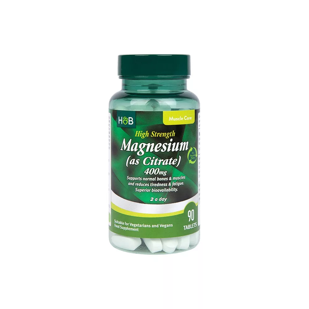 ⭐hozzájárul az egészséges csontokhoz ⭐fenntartja az egészséges izomműködést ⭐segíti a normál idegrendszeri működést ????vegánMagnézium-citrátot, a magnézium biológiailag nagymértékben elérhető formáját tartalmazza. amely könnyen felszívódik a szervezetben és számos jótékony hatásait fejti ki. A magnézium segíthet izomgörcsök, nyugtalanság és fáradtság esetén.citrátok: a piruvát-cikluson keresztül könnyen felszívódnak a véráramba magnézium:hozzájárul az idegrendszer normál működéséhez, a megfelelő izomműködéshez, a normál pszichológiai működéshez és a sejtosztódás folyamatában is szerepet játszik.Hatóanyag/2 tabletta:Magnézium 400mg 107%*NRV%: Napi bevitel referenciaérték felnőttek számáraÖsszetevők: magnézium-citrát, tömegnövelőszerek (dikalcium-foszfát, mikrokristályos cellulóz), csomósodást gátló anyag (magnézium-sztearát, szilícium-dioxid)Adagolás: Naponta 2 tablettát, étkezéssel egybekötve ajánlott bevenni.Figyelmeztetés: Az ajánlott napi fogyasztási mennyiséget ne lépje túl! Gyermekek elől elzárva tartandó! Az étrend-kiegészítő nem helyettesíti a kiegyensúlyozott, vegyes étrendet és az egészséges életmódot! Amennyiben Ön terhes, szoptat vagy egyéb gyógyszeres kezelés alatt áll, a termék szedése előtt egyeztessen kezelőorvosával.