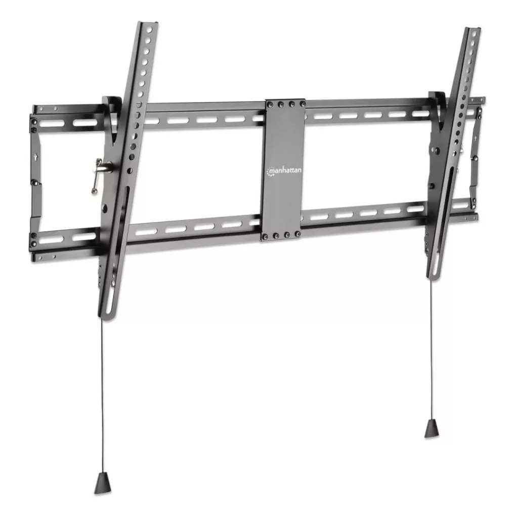 Ez a Manhattan billenő TV fali tartó biztonságosan tartja a tévét, és egy gomb elfordításával szerszám nélkül +3 és -12° közötti dőlésszöget biztosít az optimális kilátás érdekében. A 2 mm vastag, megerősített, porszórt acélból készült tartó 2 mm vastagságú, sík és ívelt LCD, OLED vagy plazma TV-khez illeszkedik 100" méretig és 70 kg súlyig (154 font), VESA-kompatibilitással 800x400-ig. Minden készen áll a magabiztos padló feletti telepítéshez a mellékelt buborékos szintezővel, amely segít a tartó tökéletes vízszintes helyzetbe állítani a falon, és az intuitív, kioldó zsinórral ellátott, bepattintható rugós zárakkal egyszerűen és biztonságosan helyezheti a tévét a helyére. Ideális lakó-, irodai, vendéglátóipari, tantermi, konferenciaterem, digitális feliratok és egyéb kereskedelmi alkalmazásokhoz. A lopásgátló nyílás lehetővé teszi egy lakat rögzítését, hogy megakadályozza az értékes kijelző eltávolítását és ellopását.