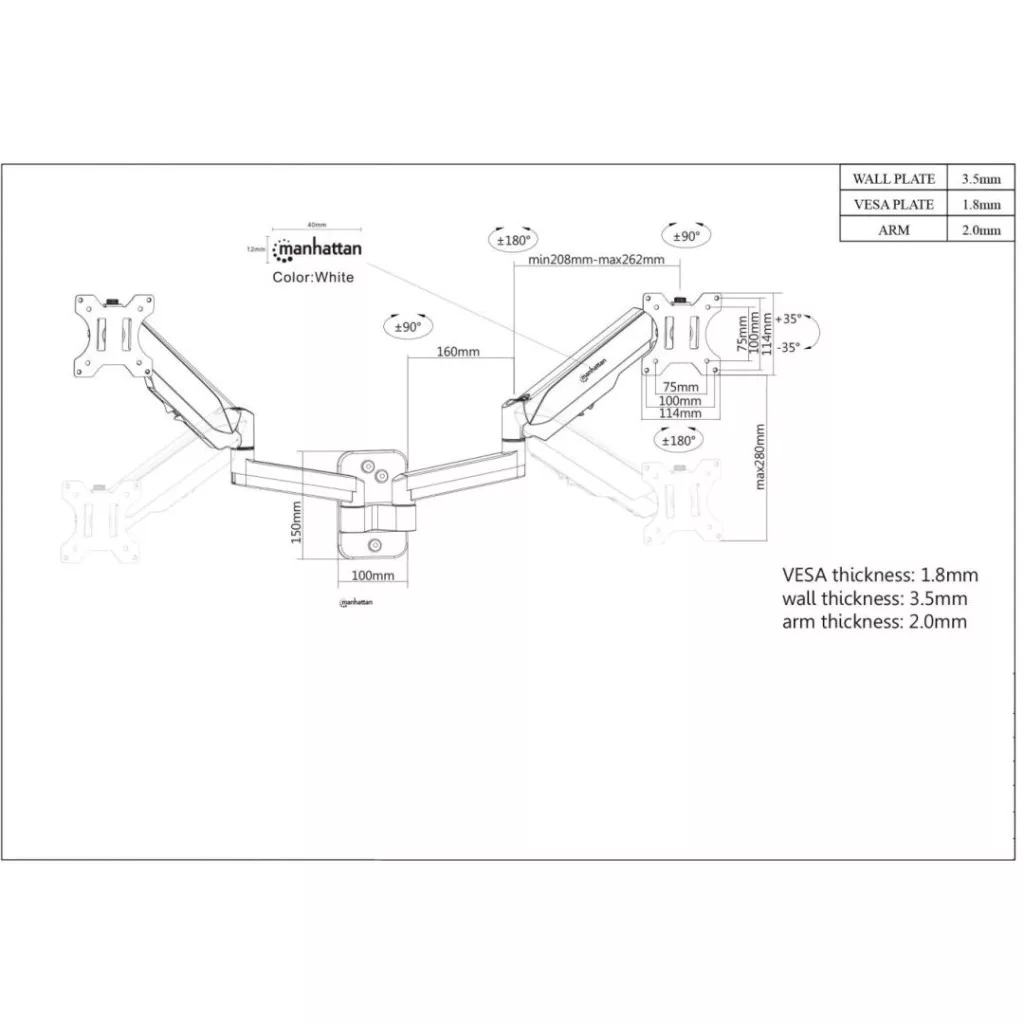 Manhattan Universal Gas Spring Dual Monitor Wall Mount Black