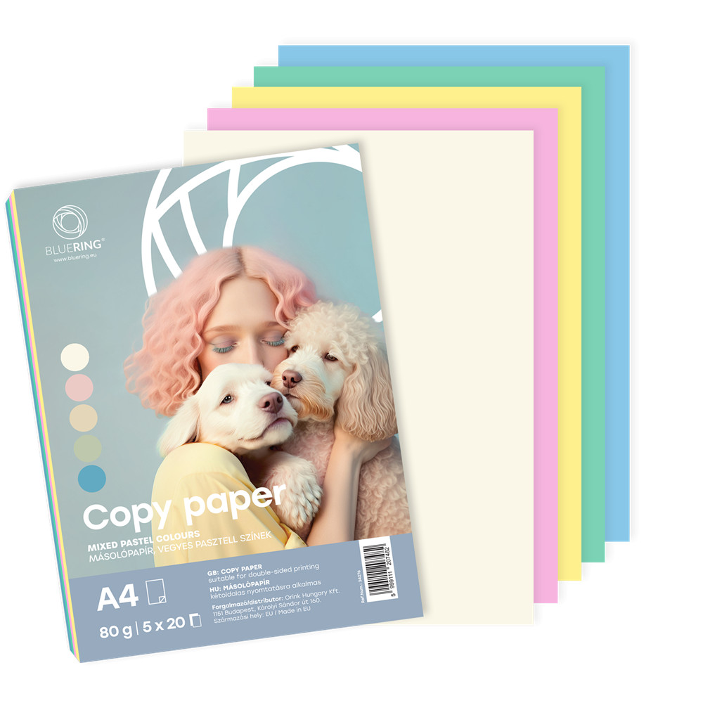 MÁSOLÓPAPÍR A/4 80G PASZTEL SZÍNES 5X20 ÍV/CSOMAG BLUERING
