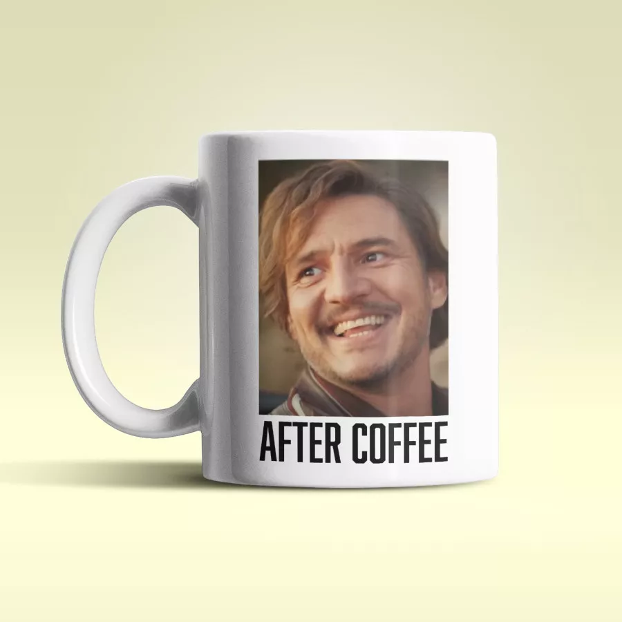 A bögre egyik oldalán Nicolas Cage "kávé előtti" arcát láthatod, a bögre másik oldalán pedig Pedro Pascal boldog 'kávé utáni" arca mosolyog vissza!