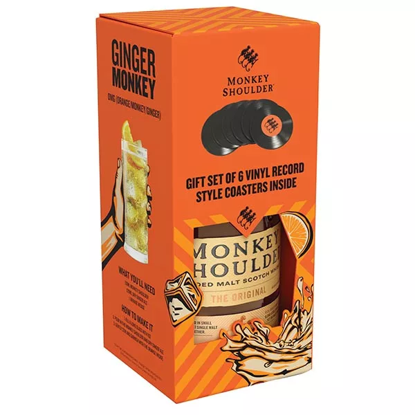 A Monkey Shoulder DD 0,7l 40% + alátét egy ikonikus skót whisky, amely krémes textúrájáról és gazdag, édes ízvilágáról ismert. Ebben a kiadásban a hagyományos keverék kiemelkedő karakterét egy praktikus alátéttel együtt kínáljuk, hogy az asztalnál minden korty elegáns legyen.
