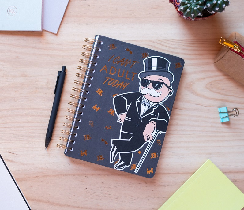 Monopoly jegyzetfüzet.méret: A5anyag: papírHivatalos licenszes termék!Jellemzői: matt, laminált, holografikus hatású bélelt keménytáblás borító, egyedi belső borítók, kerek sarkok, rugalmas szalagzár, pontozott belső rész.A családi veszekedések melegágya, a Monopoly mindig előkerül egy nyugodt családi eseményen… És bár mindig megfogadjátok, hogy most nem repül majd a csirkecomb és nem borul az asztal, de hát valljuk b,e ezt a játékot nem lehet indulatok nélkül lejátszani!Ha imádod ezt a játékot, akkor szerezd be ezt a vagány jegyzetfüzetet, melynek oldalán ott lesz a Monopoly játék ikonikus alakja is!