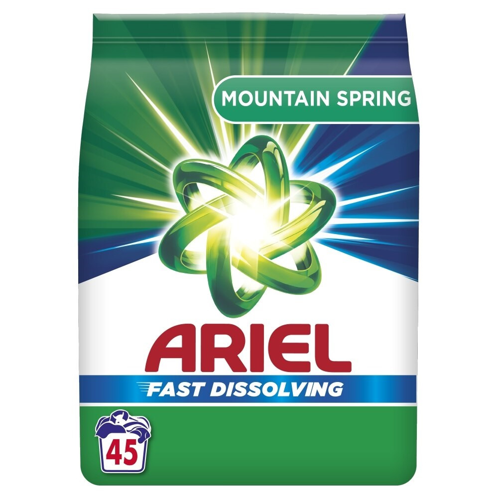 ArielMountain Spring mosópor Az Anti-residue technológiának köszönhetően az Ariel alacsonyabb hőfokú mosóprogramoknál is ragyogó tisztaságot eredményez.