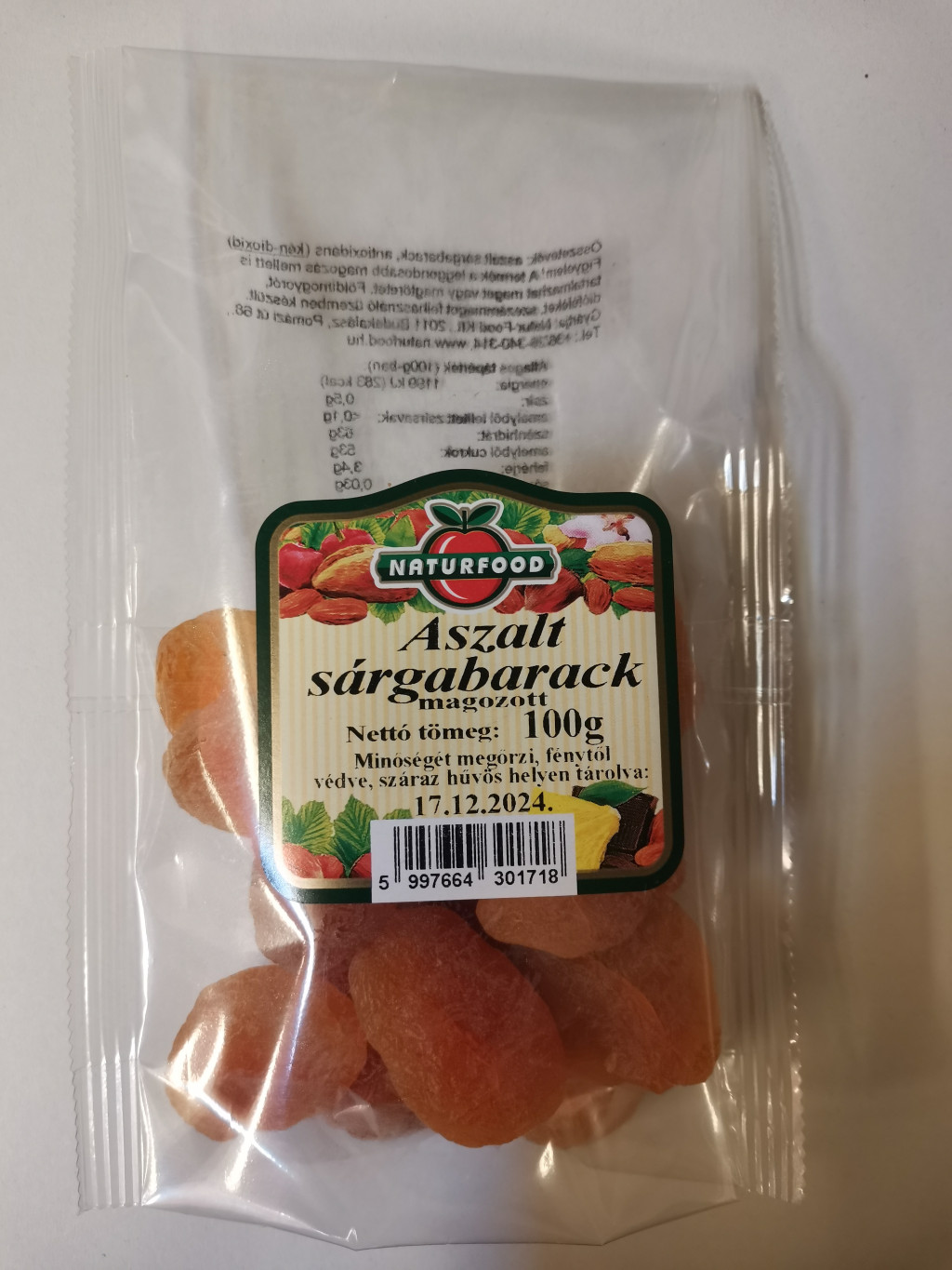 Összetevők: Aszalt sárgabarack, antioxidáns (kén-dioxid)