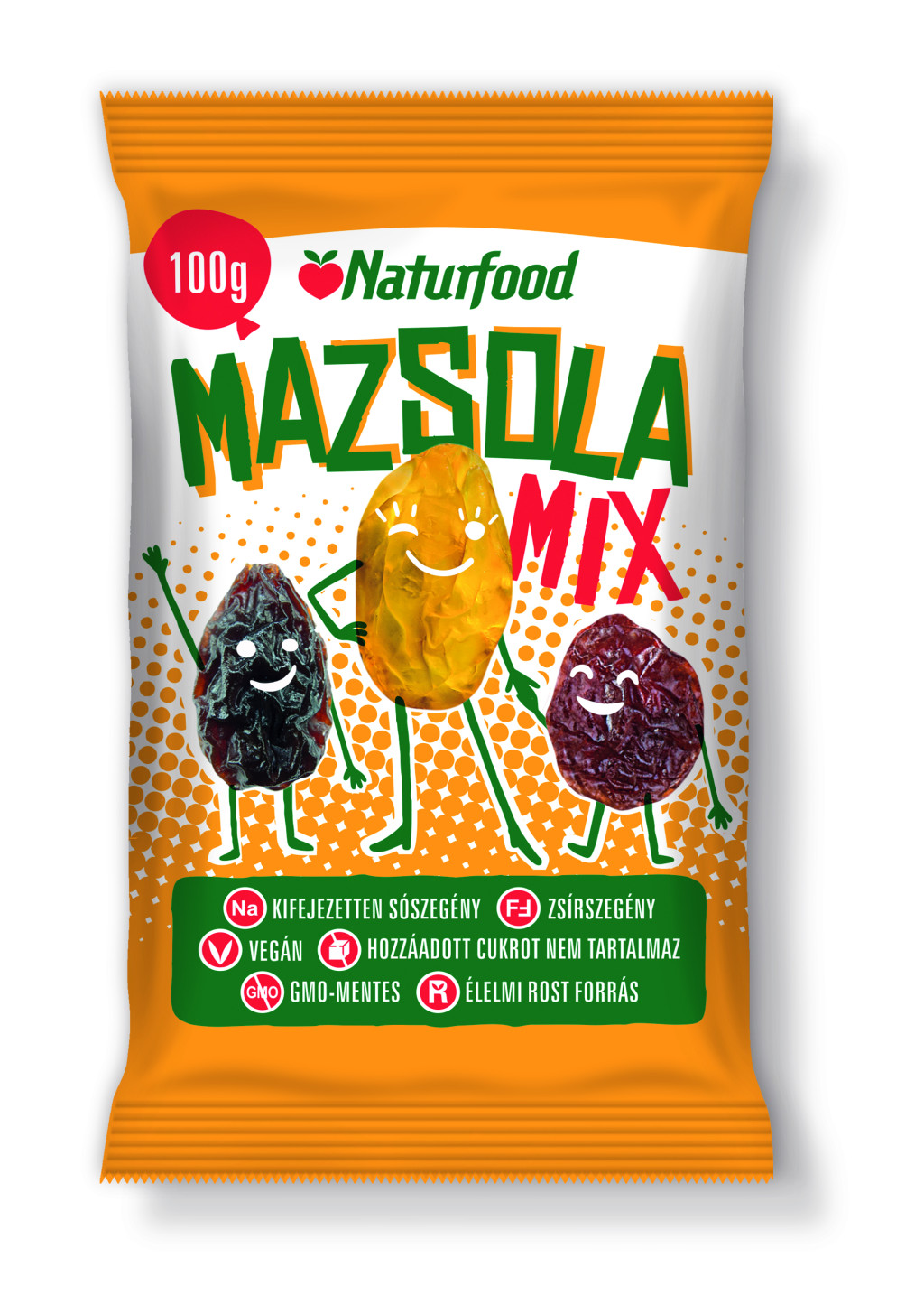 Háromféle mazsola ízletes keveréke. Fogyasztható közvetlenül csemegeként, felhasználható müzlik, joghurtok ízesítésére, sütemények készítéséhez.